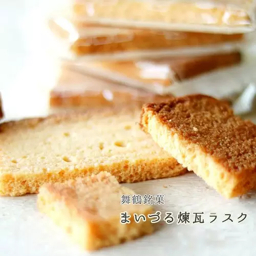 1枚1枚、レンガに見立ててカステラをカットし、乾燥焼き、秘伝のバターを1枚づつしっかりと塗りオーブンでこんがり焼いて完成!空気を含んでいるので固くないラスクです。