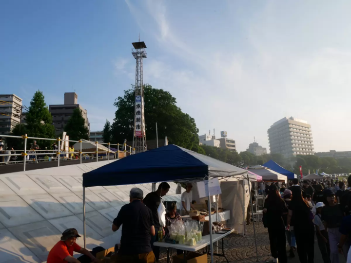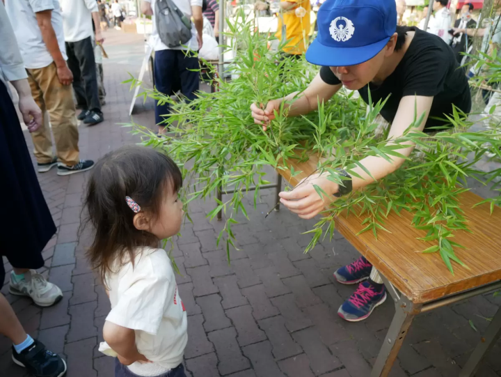 取材に訪れた7月には、七夕の季節にちなんで笹の葉を来場者に手渡しており、涼しげな風鈴の音色も会場を彩っていました。8月には鈴虫、秋には紅葉の葉、冬には体を温める甘酒(日本の伝統的な温かい飲み物)などを用意しているそうです。単なる買い物の場所ではなく、日本の伝統文化を身近に感じられる場所というのも、京橋朝市の大きな魅力の一つです。