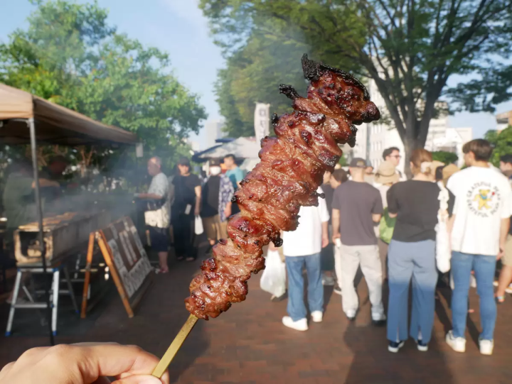 しっかりとした弾力のある食感と凝縮された旨みが病みつきになる「鬼笑」の親鳥大串(600円)。いつも長い列ができている人気店の一つです。