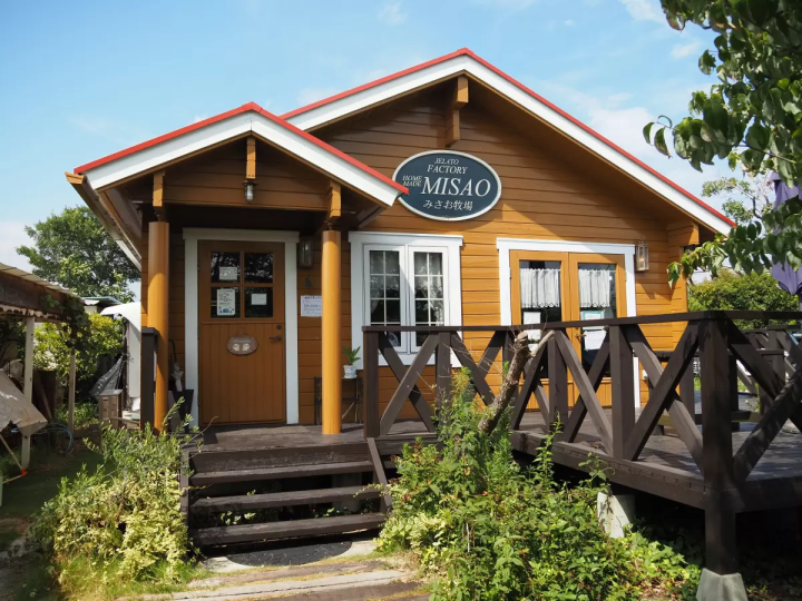 すぐそばにある牧場で搾られた新鮮なミルクを使い、香料や着色料を使わずに作る、体に優しいジェラートが人気の「みさお牧場ジェラテリアMISAO本店」。