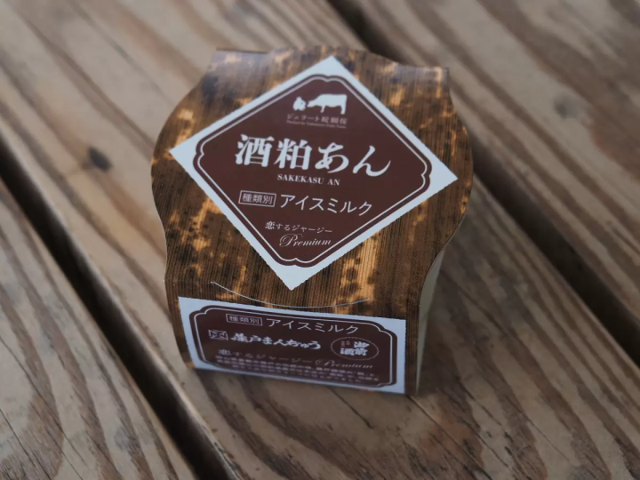 「酒粕あん」は、倉敷市の藤戸饅頭本舗の餡と、真庭市勝山の御前酒蔵元辻本店の酒粕とのコラボレーションで実現した、岡山ならではの和風ジェラートです。上品な甘さと酒粕の香りが感じられる大人の味わいです。