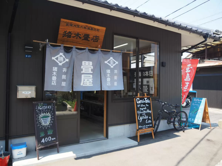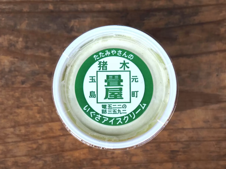 玉島の歴史あるレトロな街並みに佇む「猪木畳店」で販売されているのは、なんと畳の原料である「いぐさ(藺草)」が入ったアイスクリームです。