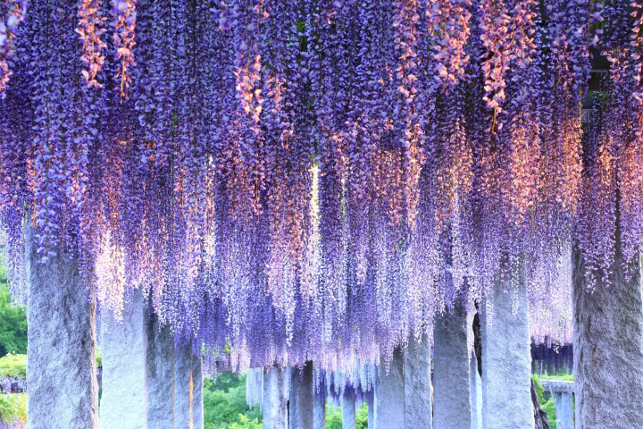 ふじの咲く丘は春の花がかれんに咲く場所です。4月には約120本のソメイヨシノやシバザクラが咲き、春の花々を楽しむことができます。また、ふじの咲く丘は、藤岡市の花「藤」をテーマにした公園でもあります。約2.3haの園内には、全長約350mの藤棚や、45種類の藤の見本園があり、紫の他にも白やピンクなどさまざまな色や形の藤の花をご覧いただけます。