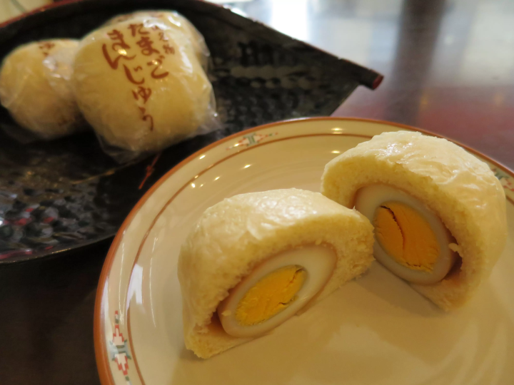成田屋といえば「たまごまんじゅう」。しょう油で味付けした玉子が丸ごとおまんじゅうの中に入っています。皮のふわふわとした食感に、食べ応えのある玉子入りのおまんじゅうは、おやつにぴったりです。