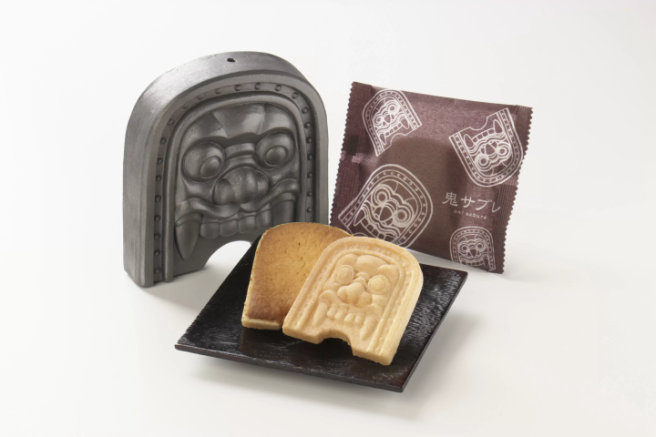 鬼瓦をモチーフにした最中の皮にサブレの生地を詰めて作られたのが、鬼サブレです。最中の芳ばしさとサブレのバター風味、サクッと軽い食感が絶妙なバランスです。藤岡市にお立ち寄りの際は、ぜひお土産にいかがでしょうか。